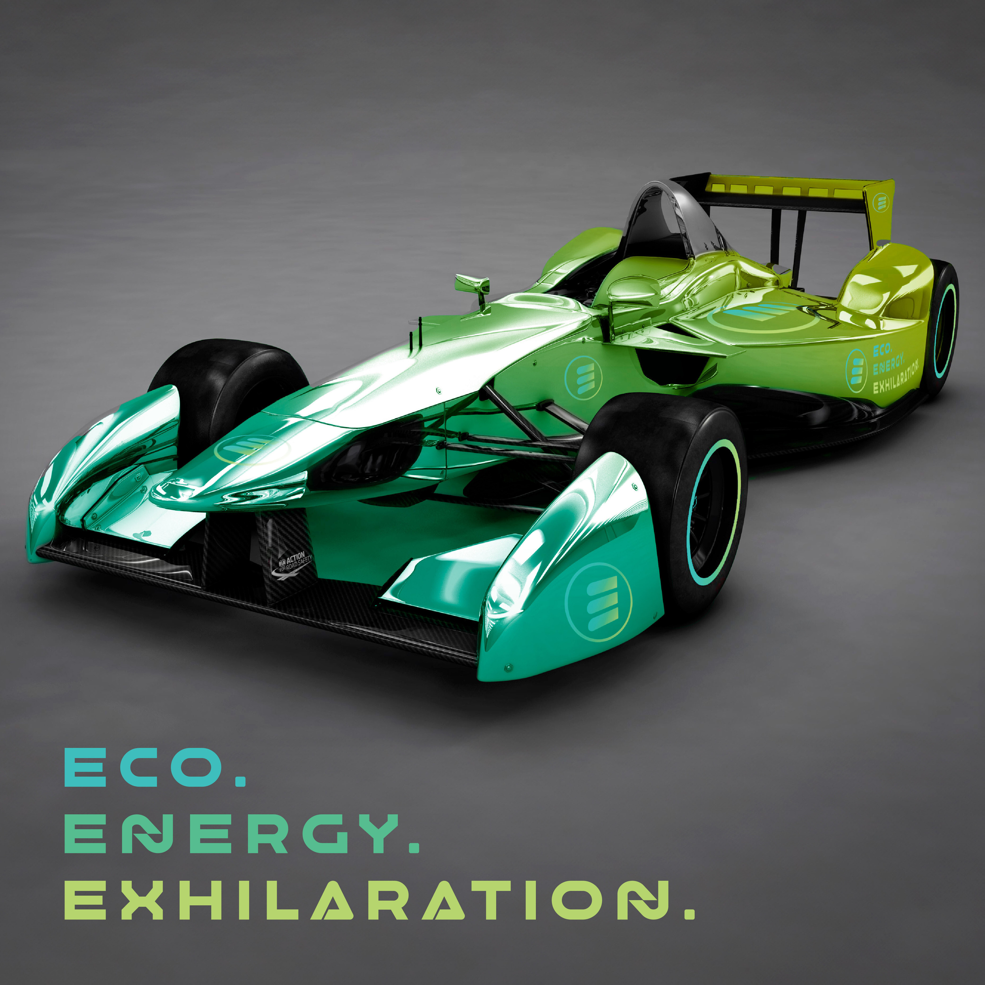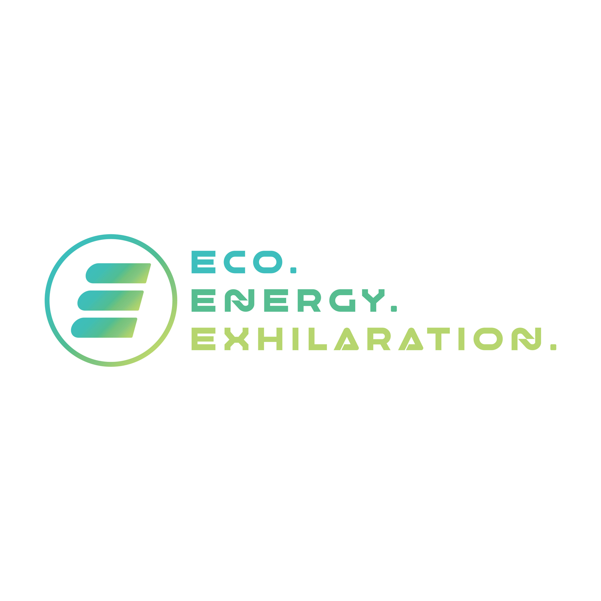 The ‘E’ icon represents the 3 points of the name, Eco, Energy and Exhilaration. The design of the 'E' looks like a battery symbol. Representing clean electric energy. This paired with the colour, also shows the transition of electricity into sport. With eco being in blue then transitioning to zesty green for 'exhilaration'. This gives energy to the design and creates excitement for eco sport. The design of the 'E' is slanting forward, again helping to create a sense of speed and energy.